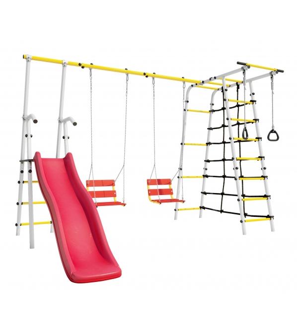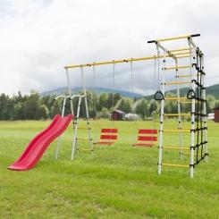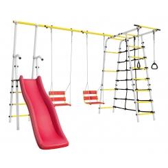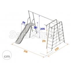 Naujos kartos SANRO HERO-2 PLIUS sporto kompleksas yra tikras atradimas aktyviems ir judriems vaikams. Puikus pirkinys vasarnamiui, vienkiemui ar privačiam sklypui. Mažasis nuotykių ieškotojas bus tiesiog patenkintas, o tėvai galės grožėtis, kaip vaikas auga, stiprėja ir virsta tikru didvyriu! Komplekse yra patogi ir saugi čiuožykla, šalia kurios yra sūpynės.Kitą komplekso dalį sudaro dvejos vertikalios ir vienos horizontalios gimnastikos kopetėlės, taip pat virvinis tinklas, pagamintas iš didelio stiprumo virvės. Visi priedai pagaminti iš oro sąlygoms atsparių medžiagų - vasarą juos galima palikti lauke. Nuotykis žada būti įdomus! Komplekso struktūra yra tvirta ir gali atlaikyti 100 kg. SANRO HERO-2 PLIUS yra puikus pasirinkimas tėvams, norintiems, kad šeimos nariai būtų užsiėmę aktyviais žaidimais gamtoje!