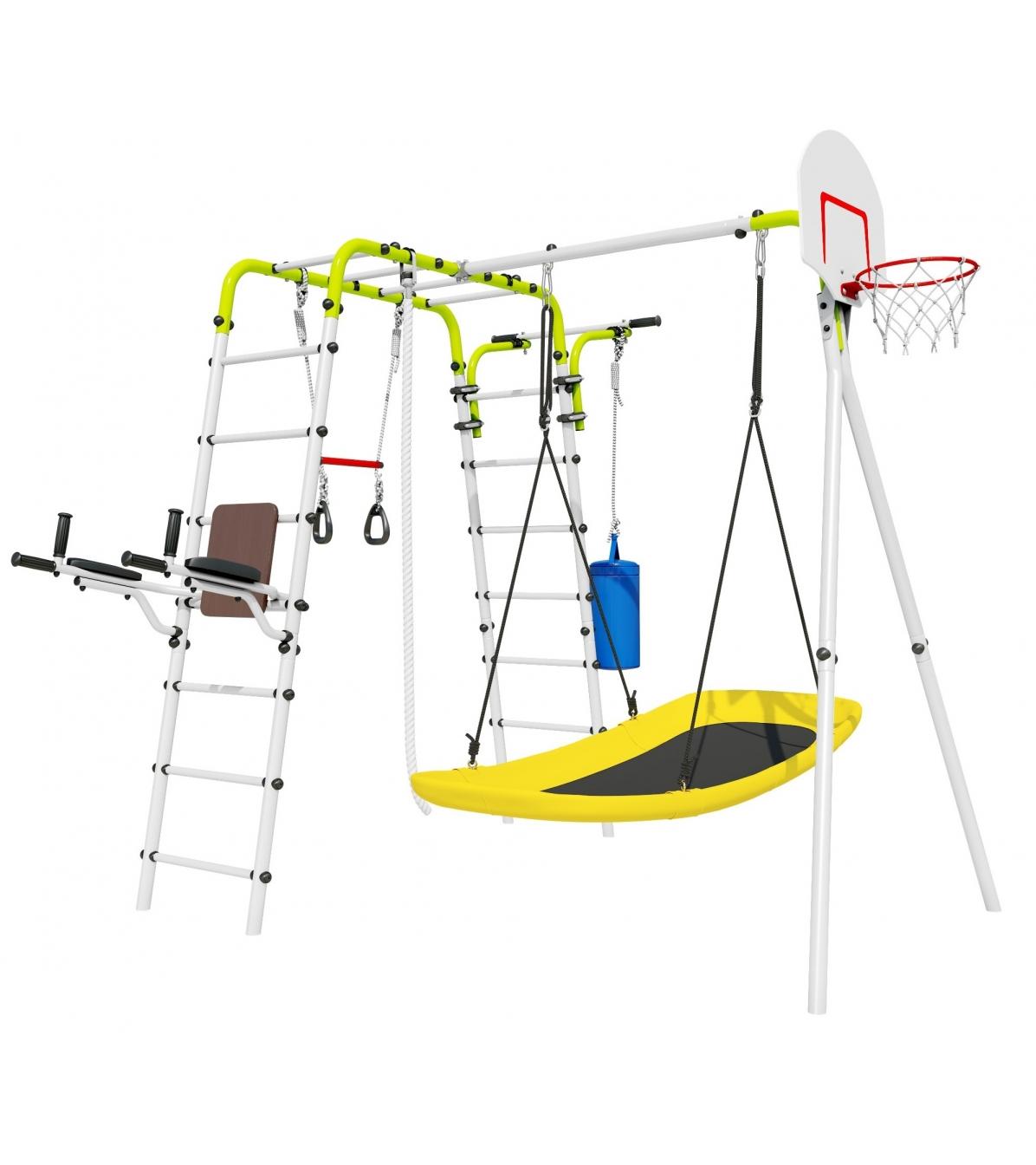 Įbetonuojamas sporto kompleksas-aikštelė vaikams SANRO FITNESS-4 baltai-salotinis, iki 100kg